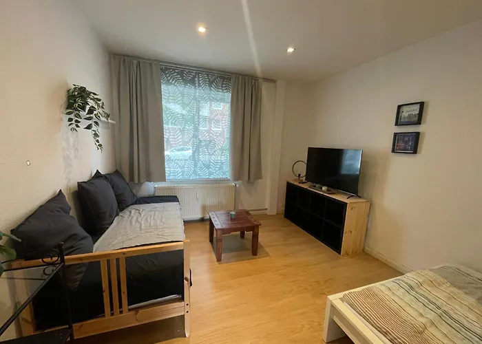 ヴィルドパーク・デュッセルドルフ・グラーフェンベルクは45m²のアパートから4.8kmで、ハインリヒ=ハイネ=ウニヴェルシテート・デュッセルドルフ植物園から2.6km先にあります。 フォルクスガルテンはApartment, Parterre, Fuer 3 Gaeste, Zentral Gelegen, Mitsubishi Halle少し離れたです。